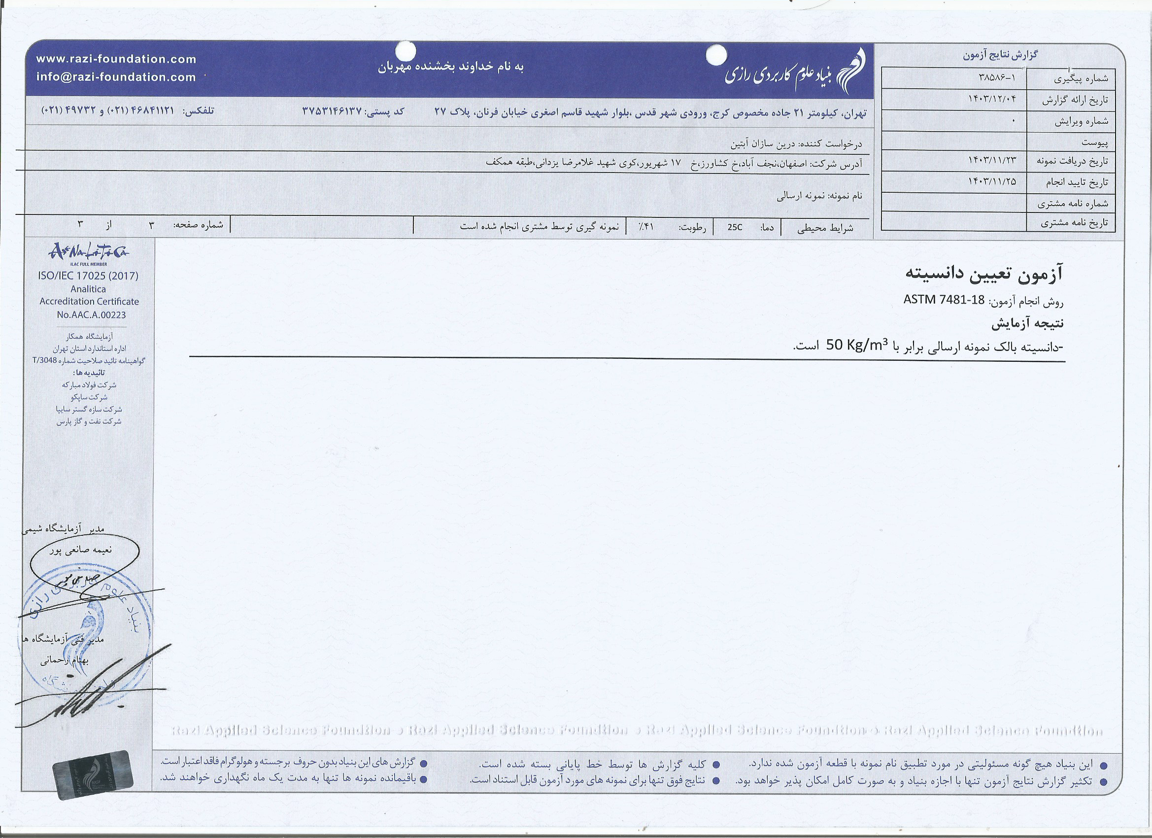 پروندهٔ تصویری آزمایشهای رسمی محصول پرلیت شرکت آبتین