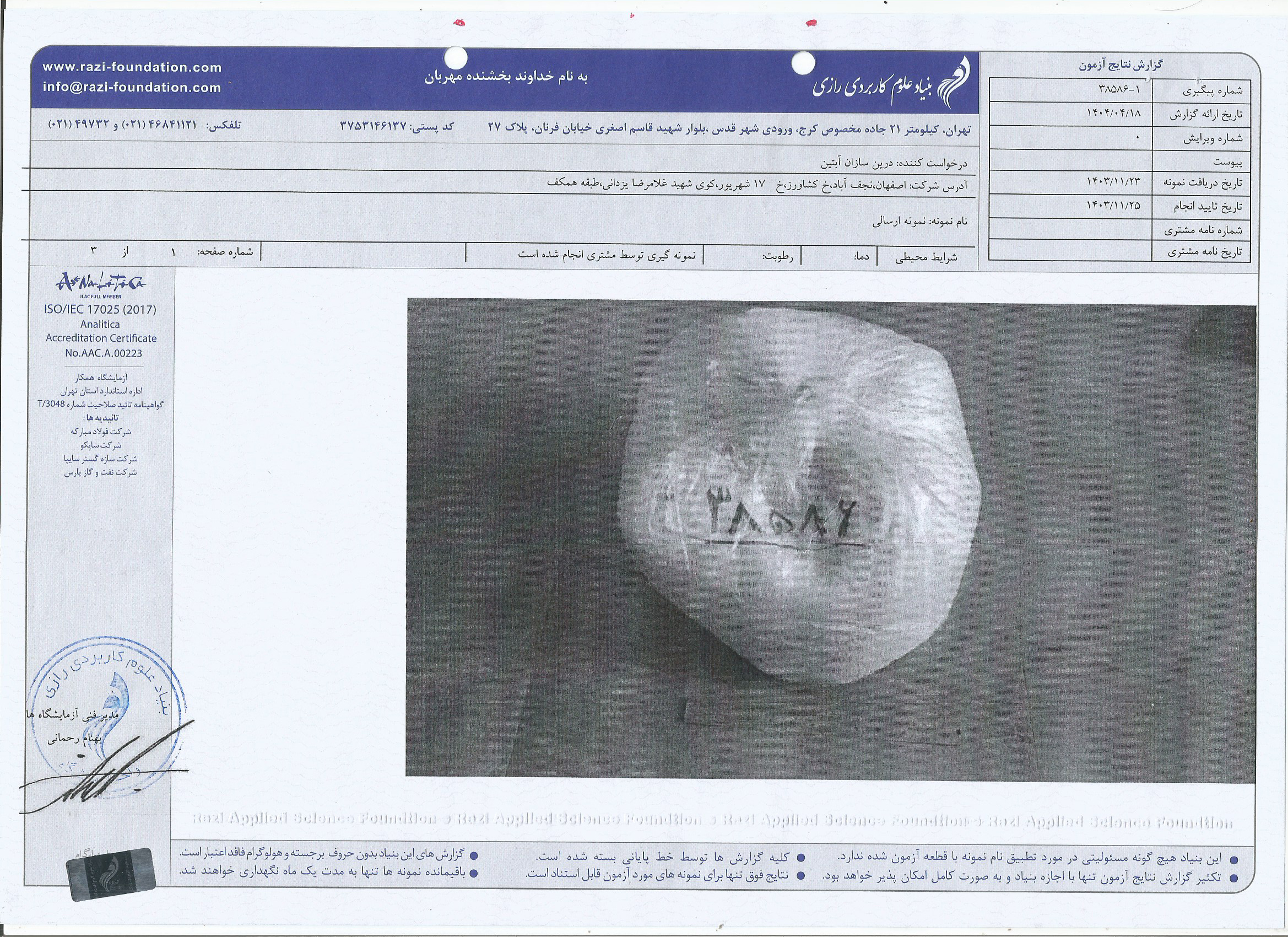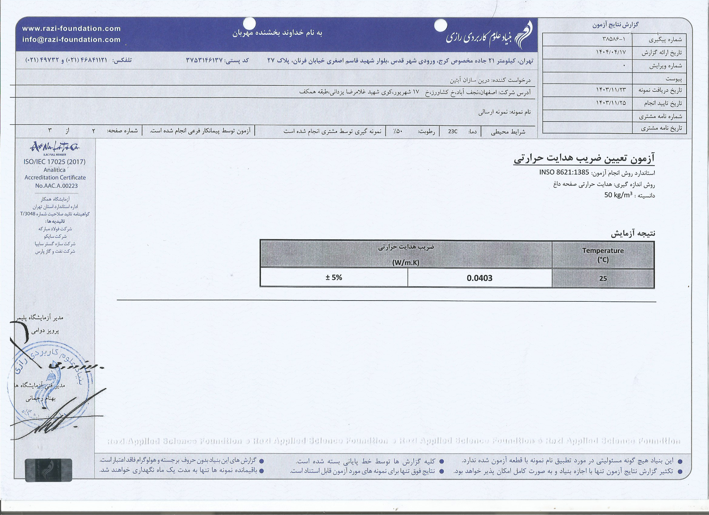 پروندهٔ تصویری آزمایشهای رسمی محصول پرلیت شرکت آبتین